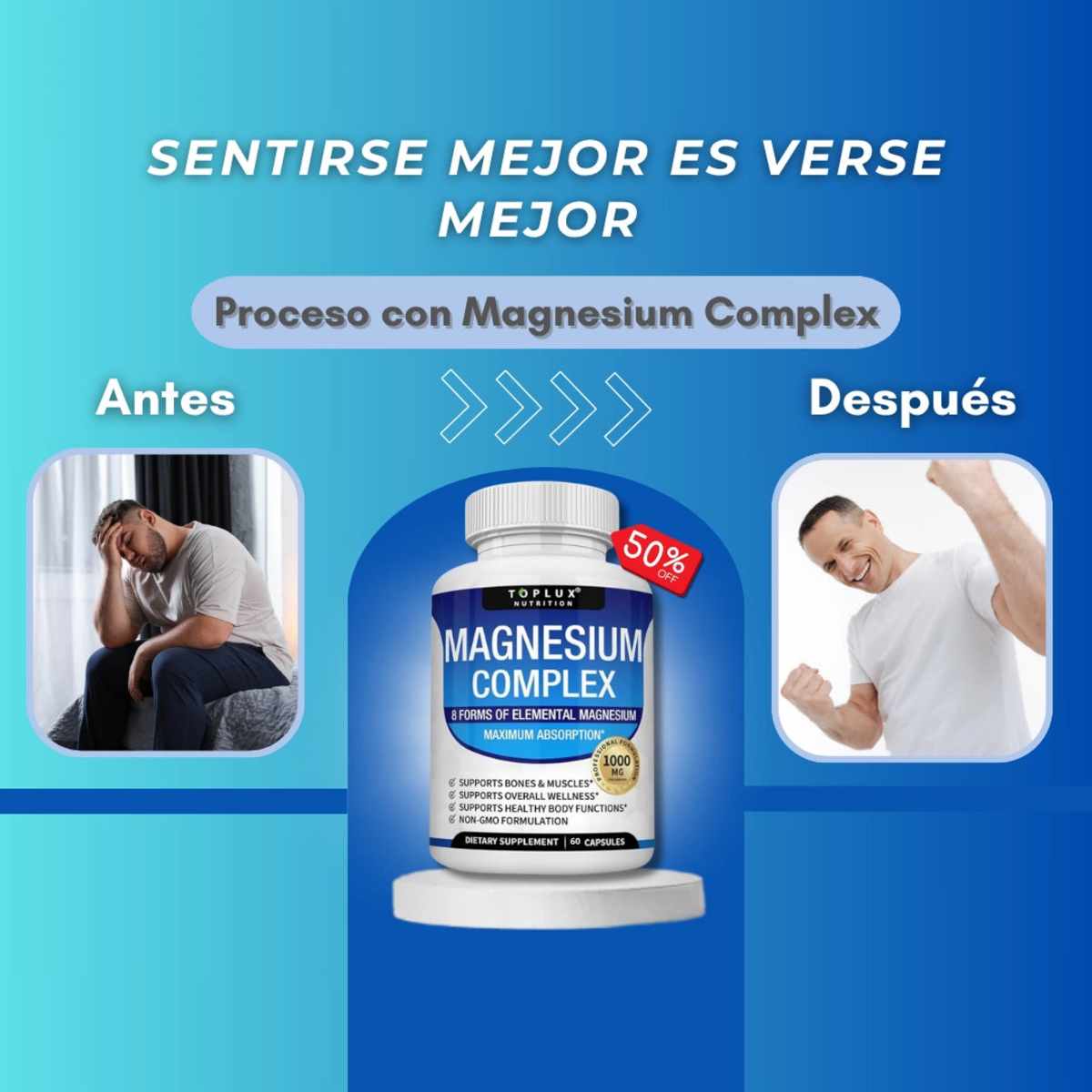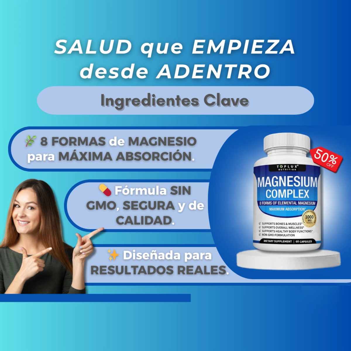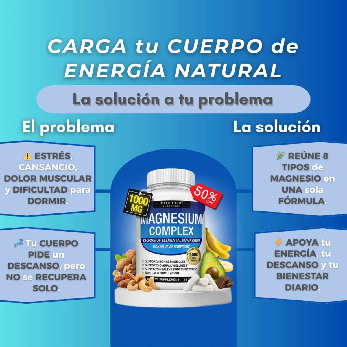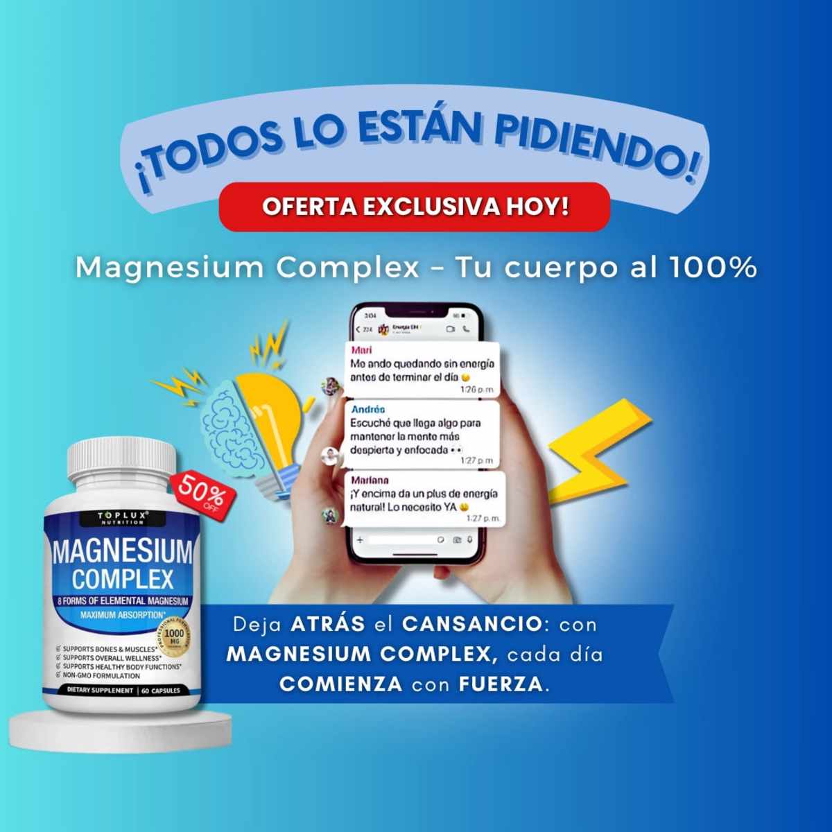 Si te sientes con cansancio, hinchazón abdominal, dolores de cabeza frecuentes o cambios en tu energía diaria, una causa frecuente es la falta de magnesio y el estrés celular. Magnesio Complex se presenta como un suplemento pensado para apoyar funciones esenciales del organismo y ayudarte a recuperar vitalidad en tu día a día.