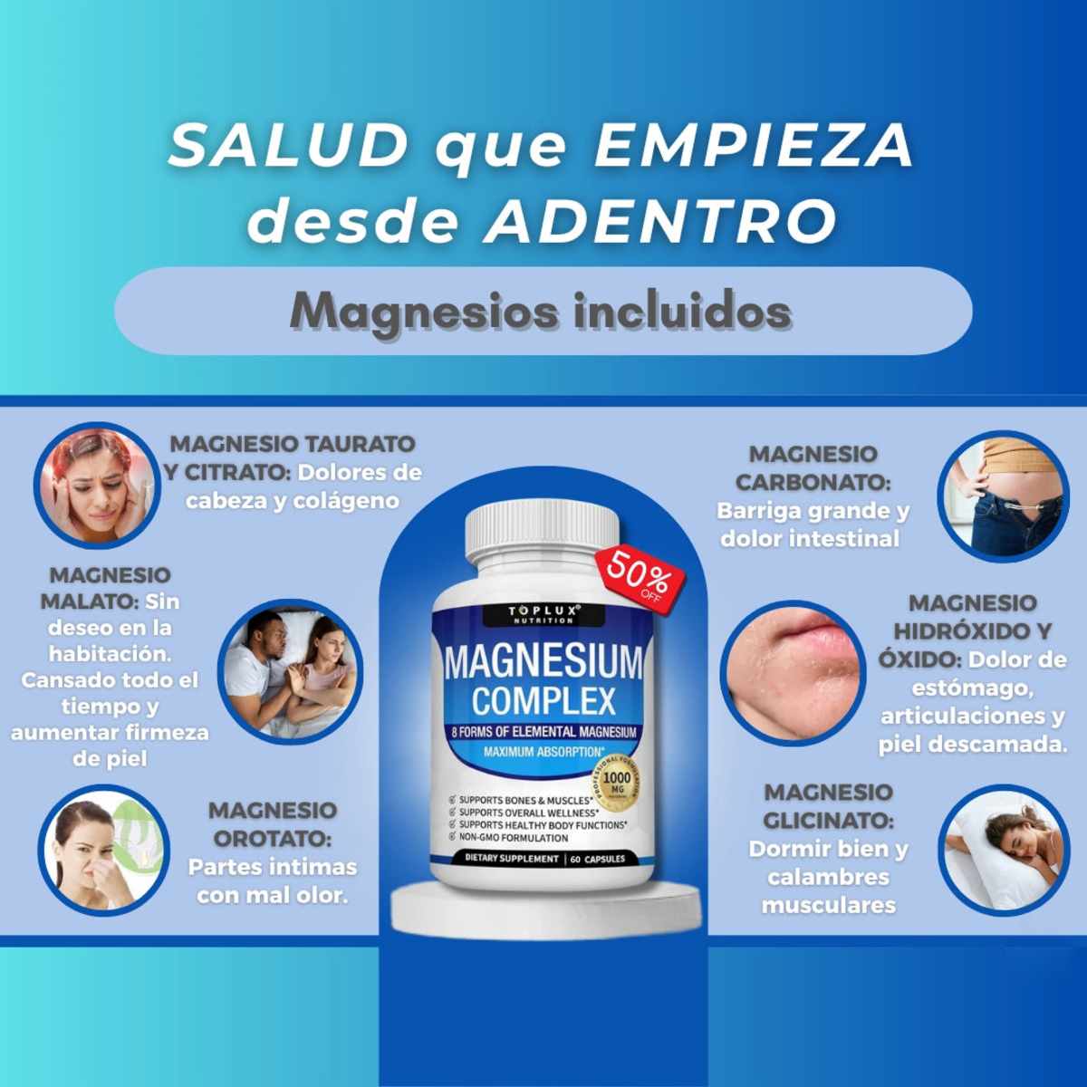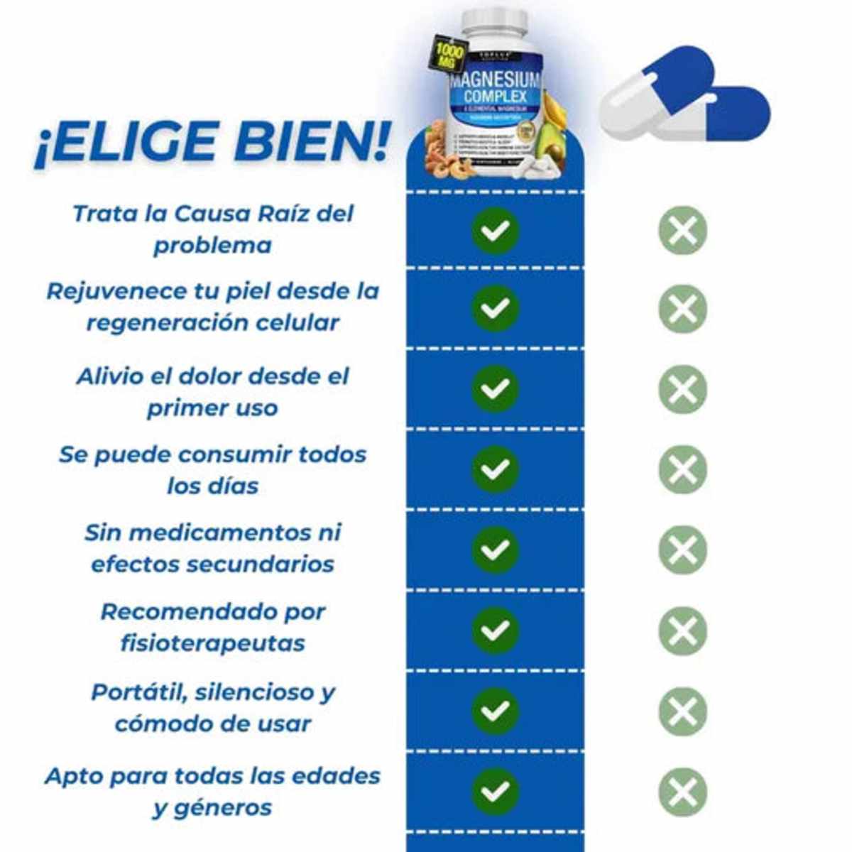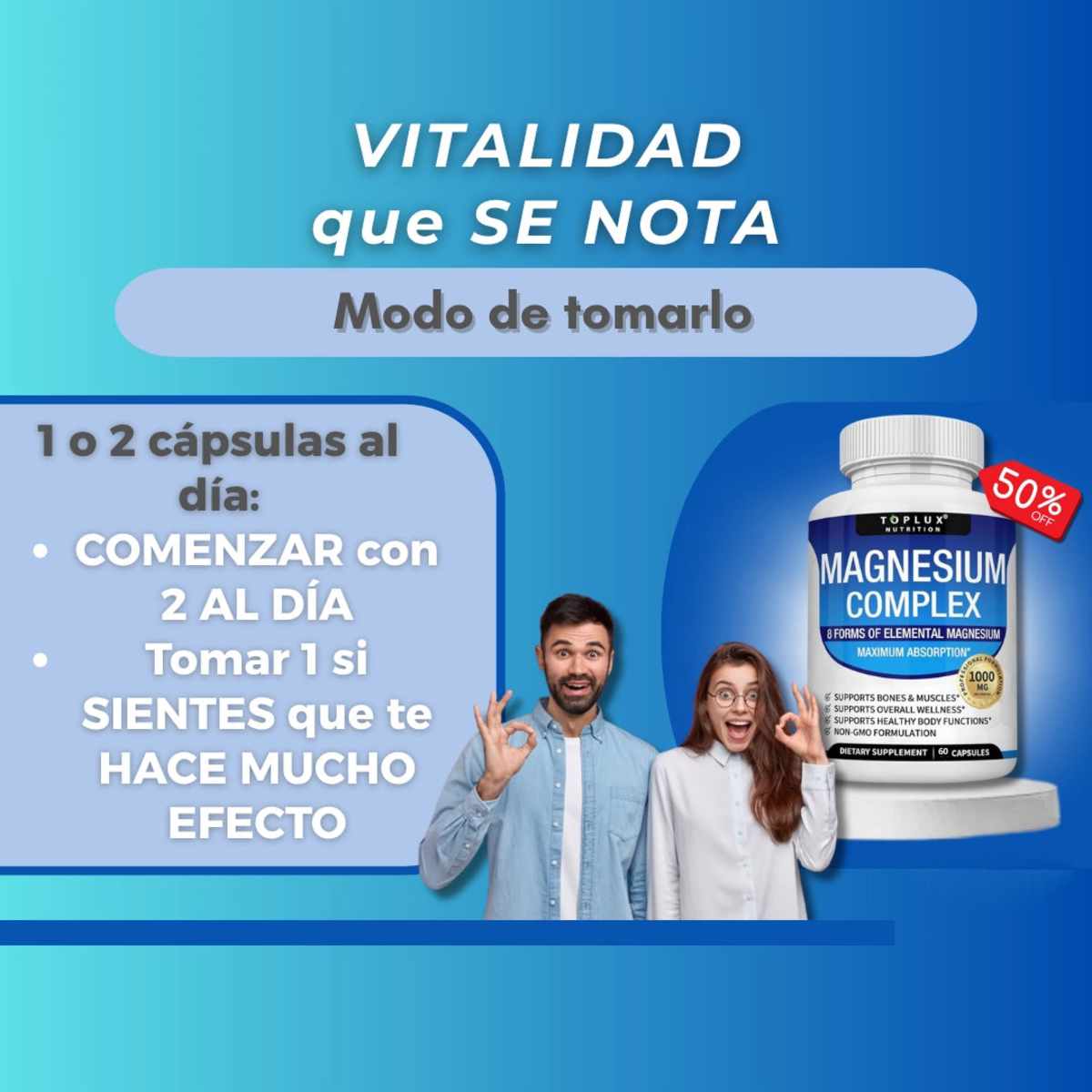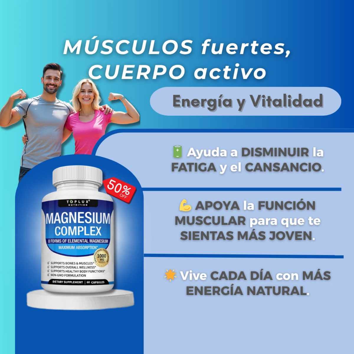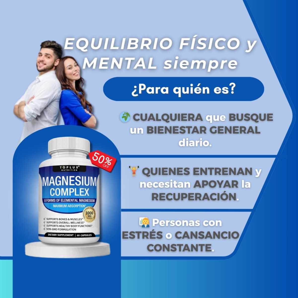 Si te sientes con cansancio, hinchazón abdominal, dolores de cabeza frecuentes o cambios en tu energía diaria, una causa frecuente es la falta de magnesio y el estrés celular. Magnesio Complex se presenta como un suplemento pensado para apoyar funciones esenciales del organismo y ayudarte a recuperar vitalidad en tu día a día.