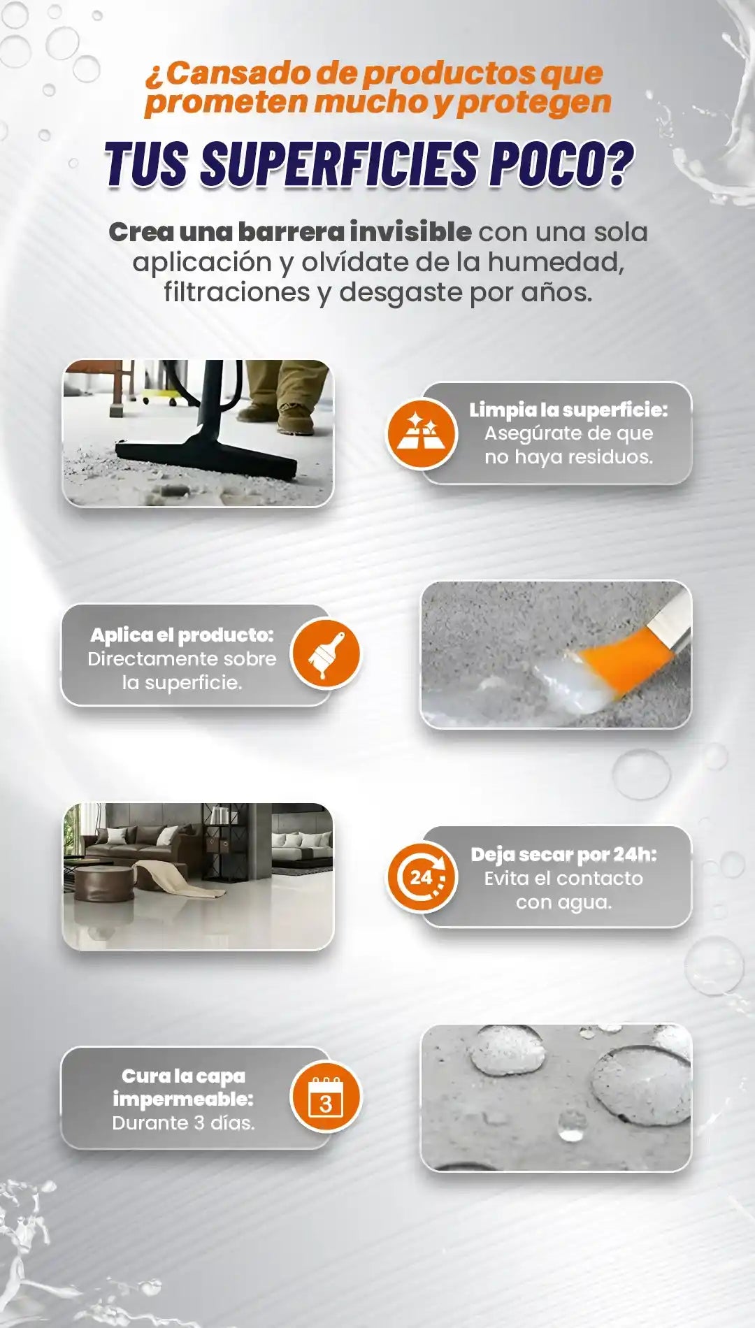 Antes tenía manchas de humedad y ahora todo está seco y brillante. Muy fácil de aplicar.